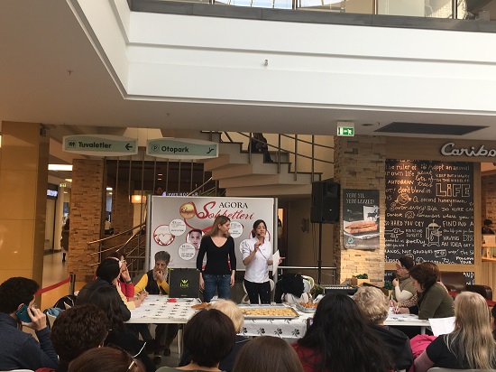 17 Şubat Cuma günü İzmir Mutfak Sanatları Enstitüsü’nden Pasta Şefi Dila Tanık ile gerçekleşen “Sevgi Kurabiyeleri Yapımı” Agora Alışveriş Merkezi A blok etkinlik alanında yapıldı. Bu keyifli etkinliğe ücretsiz olarak katılan ziyaretçiler sevdiklerine özel kurabiye süslemeleri yaptı. Etkinlikte katılımcılar, Dila Tanık tarafından pişirilmiş kurabiyelerin ve cup cakelerin üstlerini rengârenk süslemeler ile zevklerine göre süsledi. Sevdiklerine tatlı sürprizler hazırlamak isteyenlerin katılımıyla gerçekleşen etkinlikte şeker hamurunun açılması, renklendirilmesi ve şekillendirilmesi İmse Pasta Şefi Dila Tanık tarafından gösterildi. Tanık’ın özel olarak getirmiş olduğu krema ile katılımcılar kendilerine verilen cupcakelerle sevdiklerine özel süslemeler yaptılar. Tanık