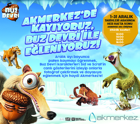 Aralık ayı boyunca paten kaymayı öğrenmek, Buz Devri karakterleri Sid ve Scrat’ın canlı gösterilerini izleyip onlarla fotoğraf çektirmek ve doyasıya eğlenmek için minikler Akmerkez’de buluşuyor.